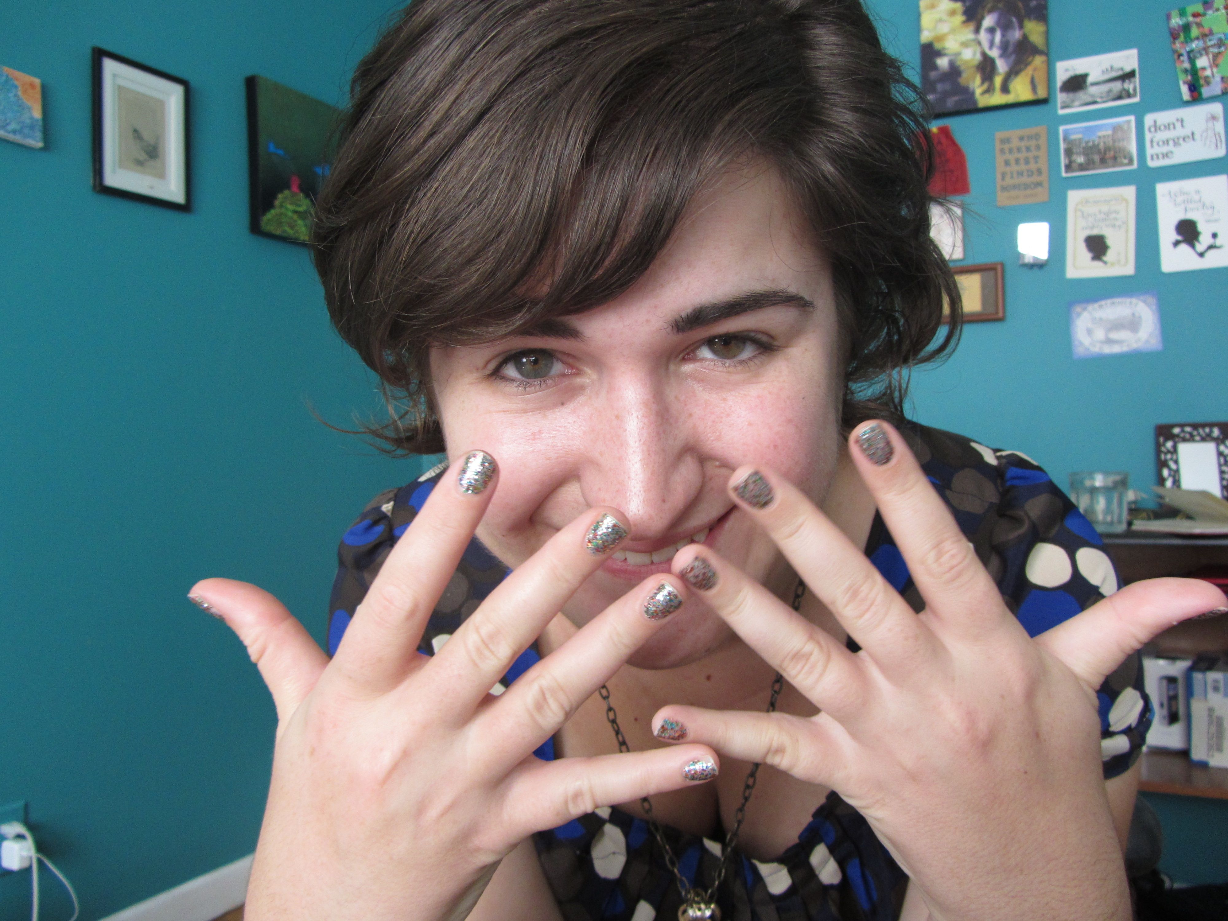 Me with glitter nails.